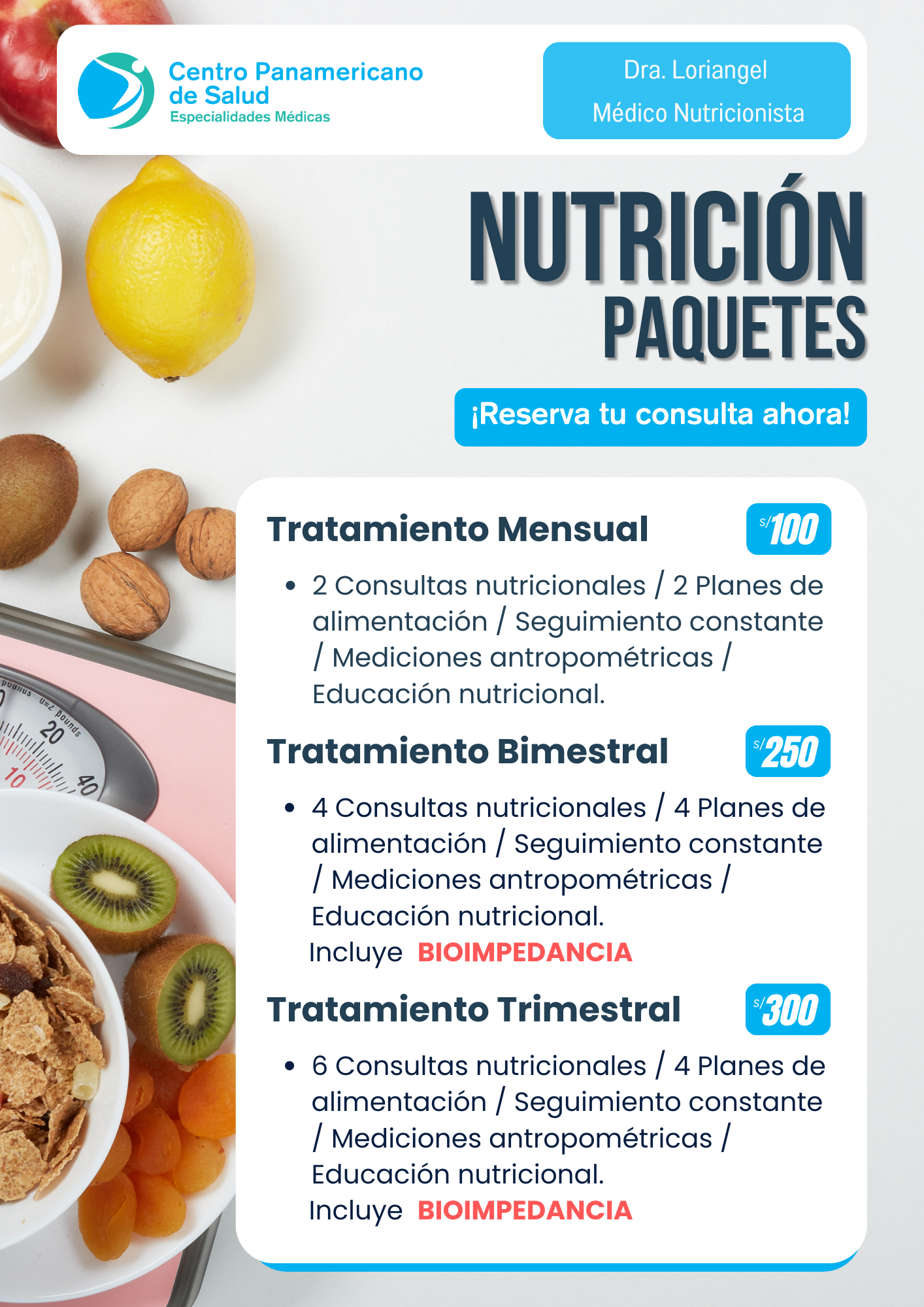 Elaboraciòn de planes de alimentación saludables de forma personalizada y en función de las necesidades calóricas de nuestros pacientes, además, realizamos evaluaciòn de composición corporal mediante bioimpedancia lo cual nos permite valorar el porcentaje de grasa, de músculo y agua corporal.